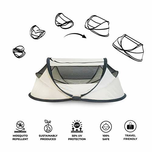 DERYAN Travel Cot łóżeczko turystyczne – BabyBox – Pop up – lekkie, kompaktowe i składane – składane – składane w zaledwie 2 sekundy – z moskitierą i torbą do przenoszenia (śmietana)