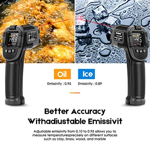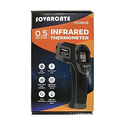 Termometr na podczerwień SOVARCATE – cyfrowy pistolet do temperatury z alarmem wysokiej i niskiej temperatury. Zakres pomiarowy od -50°C do 600°C. Idealny do gotowania pizzy, piekarnika i grilla. Posiada sondę temperatury i regulowaną emisję. Cyfrowy termometr SOVARCATE to niezawodne narzędzie, które pomoże Ci kontrolować temperaturę podczas przygotowywania potraw. Dzięki niemu będziesz mógł osiągnąć idealne rezultaty w kuchni. Wybierz SOVARCATE i ciesz się precyzyjnym pomiarem temperatury!