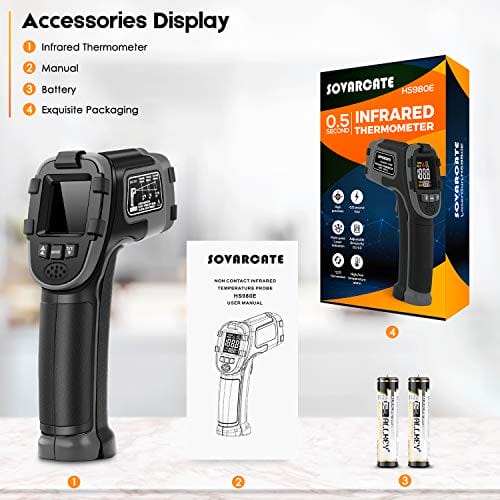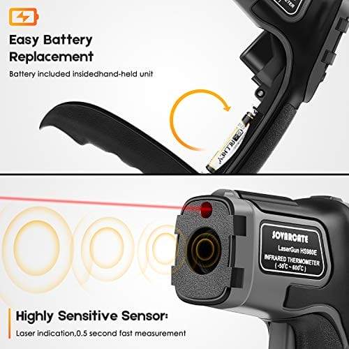 Termometr na podczerwień SOVARCATE – cyfrowy pistolet z alarmem, -50°C ~ 600°C, sonda do gotowania pizzy, piekarnika i grilla