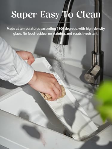 ✅ Bezpieczne przechowywanie i: Bezpieczne przechowywanie i przechowywanie: Ergonomiczna konstrukcja z podniesionymi krawędziami ułatwia i bezpieczniej trzyma talerze. Cały spód jest polerowany na gładko, bez glazury, co zwiększa powierzchnię styku między płytami a blatem i wzmacnia siłę tarcia, dzięki czemu talerze do serwowania