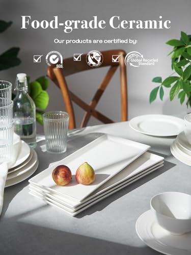 ✅ TRWAŁE PŁYTY DO: TRWAŁE PŁYTY DO SERWOWANIA PORCELANY: Prostokątne talerze wykonane są z wytrzymałej porcelany wypalanej, rodzaju wysokiej jakości, łatwego do czyszczenia, bezołowiowego, odpornego na pęknięcia i mocniejszego materiału niż ceramika. Dzięki temu nasze prostokątne naczynia do serwowania są wystarczając