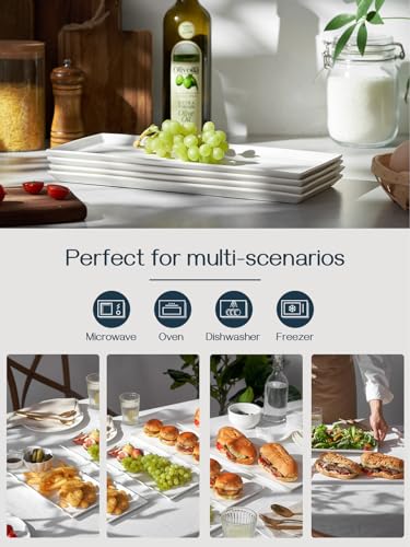 DOWAN Duży talerz do serwowania, 36,8 cm, biały, prostokątny, porcelanowy, odpowiedni do przystawek, mięsa, deserów, makaronów, bufetów, imprez, nadaje się do zmywarki i kuchenki mikrofalowej, zestaw
