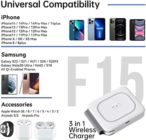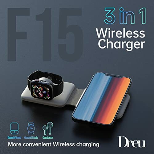 Dreu Wireless Charger, 3 w 1 Bezprzewodowa ładowarka Mag-safe Stacja Szybkiego ładowania do Kompatybilna z iPhone 14/13/12/11/XS MAX/XR/XS/X/8/8 Plus, iWatch 8/SE/7/6/5/4/3/2, AirPods Pro/2/3