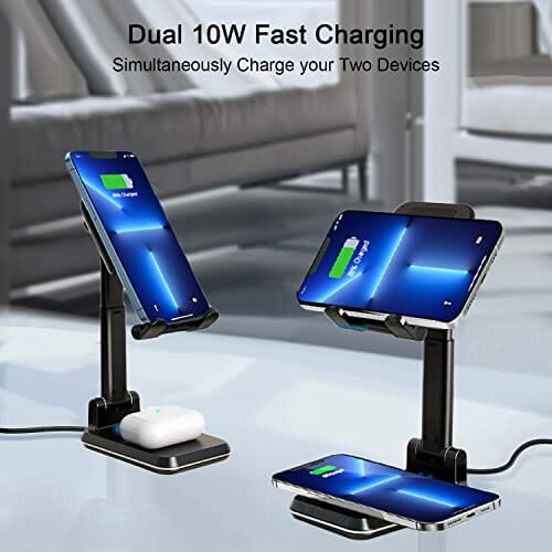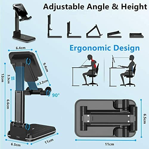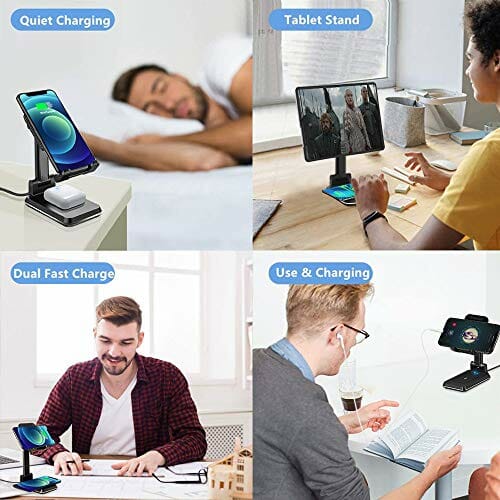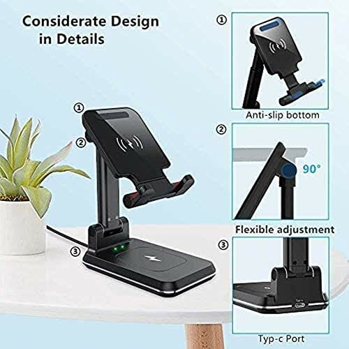 • Regulowana wysokość i kąt: nasza bezprzewodowa podstawka do ładowania telefonu ma regulowaną konstrukcję, dzięki której można łatwo regulować wysokość stojaka i kąt uchwytu, dzięki czemu idealnie nadaje się do oglądania filmów, facetime, pracy i wielu innych!