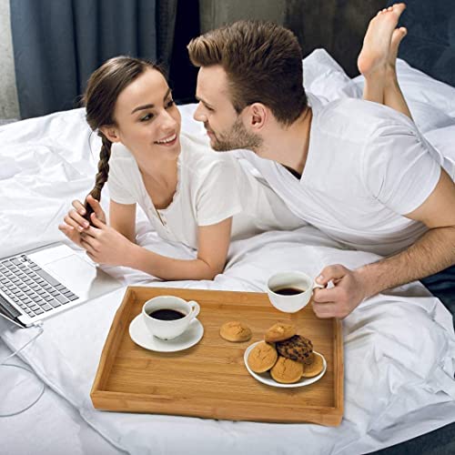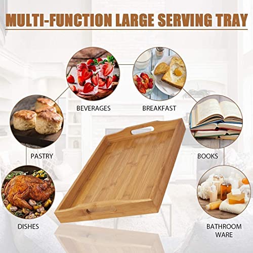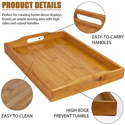 • Wysokiej jakości drewniana taca z uchwytami: taca bambusowa jest mocniejsza i piękniejsza niż tradycyjna drewniana taca do serwowania i zapewnia trwałość i stabilność. Ma eleganckie boki z szerokimi uchwytami ułatwiającymi chwytanie.
