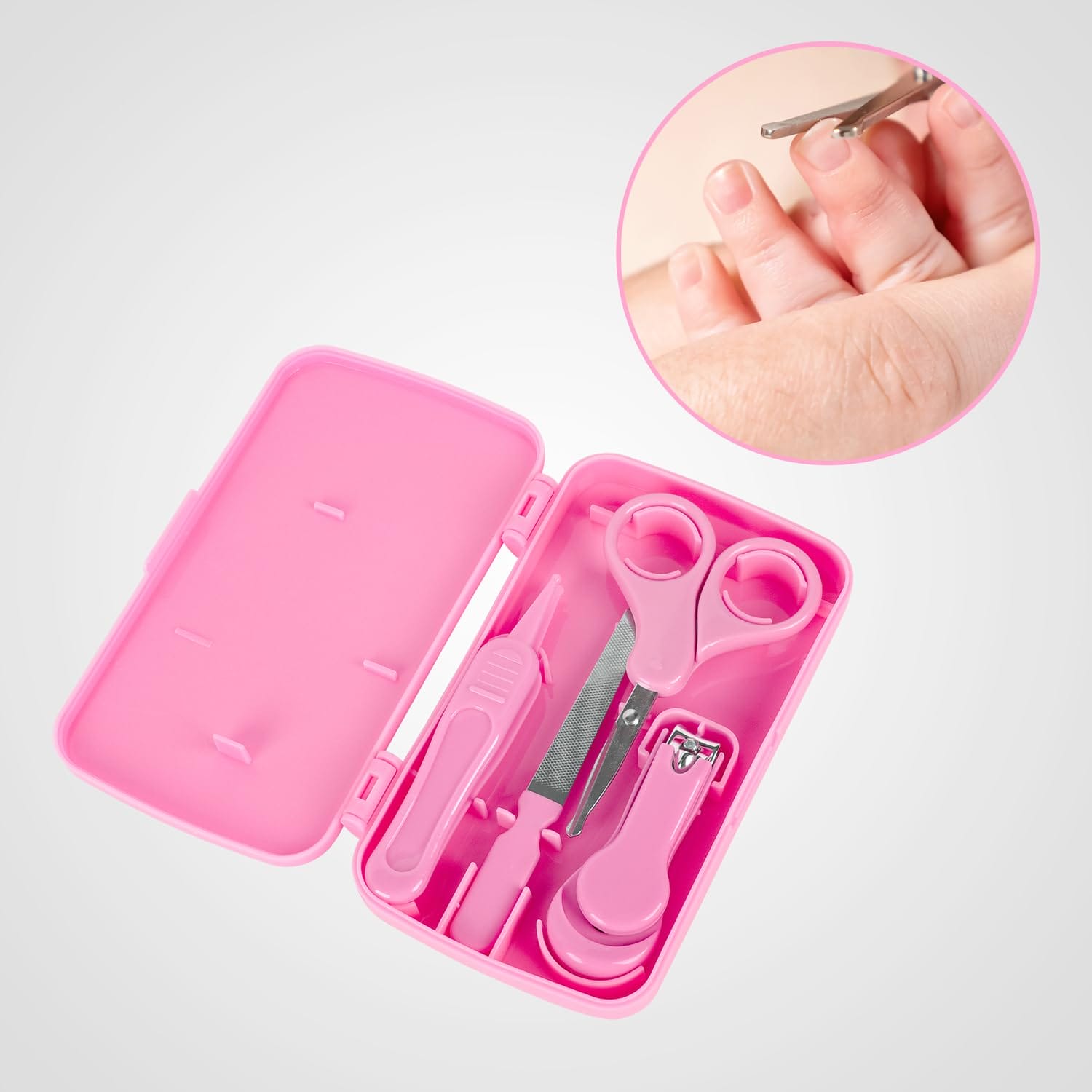 Zestaw do pielęgnacji paznokci dla niemowląt 4 w 1 w kolorze różowym,