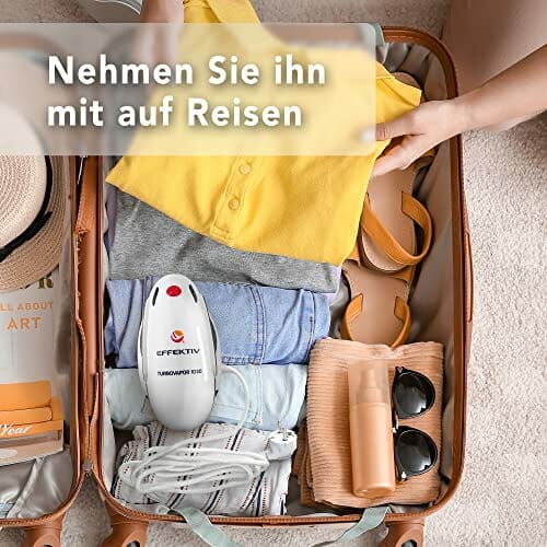 • · SUPER ZAWARTOŚĆ PUDEŁKA – Pionowa parownica podróżna z kablem o promieniu 2 metrów, szczotką do ubraniami i asortymentem, miarką do wody, żaroodporną matą silikonową oraz torbą do przechowywania