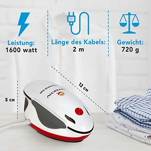 • ·⏱️ MAKSYMALNA OCHRONA – lekkie i ultrakompaktowe żelazko parowe do po-dróży i domu ma automatyczne wyłączanie i ochronę przed przegrzaniem. Żelazko pionowe będzie gotowe w zaledwie 50 sekund i jest w stanie wypra-sować tkaniny, z którymi nie poradzi sobie nawet żelazko o normalnych rozmia-rach. Urządzenie wyłączy się samo, jeśli zapomnisz je wyłączyć