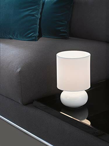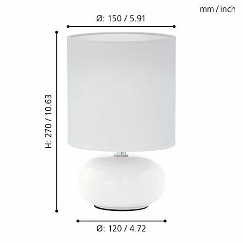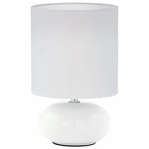 EGLO Lampa stołowa Trondio, lampa stołowa z ceramiki i tkaniny, lampka nocna w kolorze białym, lampa do salonu, lampa z przełącznikiem, oprawa E14