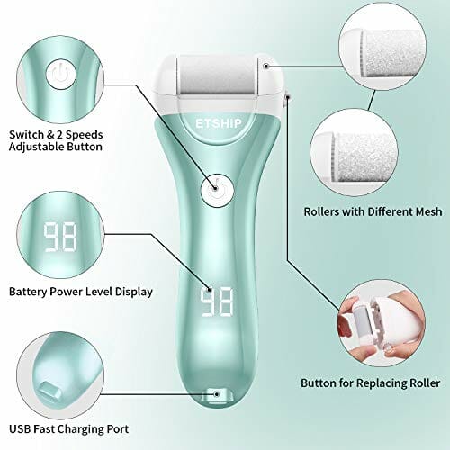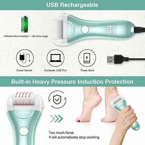 • 【Ergonomiczny i modny design】Urządzenie do usuwania pilników do stóp marki Etship z możliwością ponownego ładowania ze specjalną, ergonomiczną antypoślizgową konstrukcją, super łatwe do trzymania i dzięki temu nie boi się upadku. Jedyny w swoim rodzaju i modny wygląd naszego elektronicznego pilnika do stóp jest bardzo popularny wśród mężczyzn, kobiet noszących wysokie obcasy, osób starszych, wędrowców, biegaczy i rzemieślników. Zapakowany w piękne pudełko prezentowe, może być prezentem dla przyjaciół, rodziny i każdego, kogo kochasz.