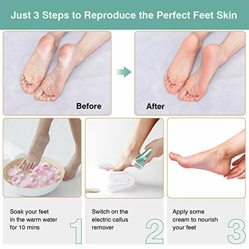 • Bateria USB i wyświetlacz LCD: urządzenie do usuwania nalotu z elektrycznym pilnikiem nożnym z wbudowanym akumulatorem 1200 mAh. Obsługuje to ładowanie poprzez podłączenie do większości portów USB, np. komputerów stacjonarnych, komputerów stacjonarnych, power banków, wtyczki do ładowania lub bezpośredniego gniazda USB. Pojedyncze ładowanie umożliwia użytkowanie przez ponad 180 minut. Dzięki wbudowanemu wyświetlaczowi LCD baterii na obudowie elektrycznej traspla zrogowaciałego naskórka można dokładnie sprawdzić stan baterii.