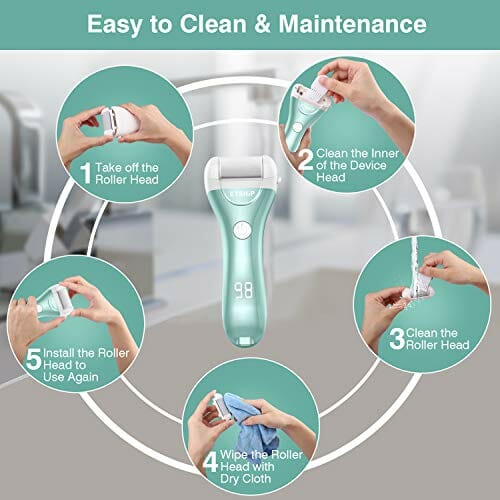 Etship elektryczny pilnik do stóp, do wielokrotnego ładowania, zestaw do pielęgnacji stóp, pedicure, martwy naskórek, z 4 kółkami, 2 prędkości.