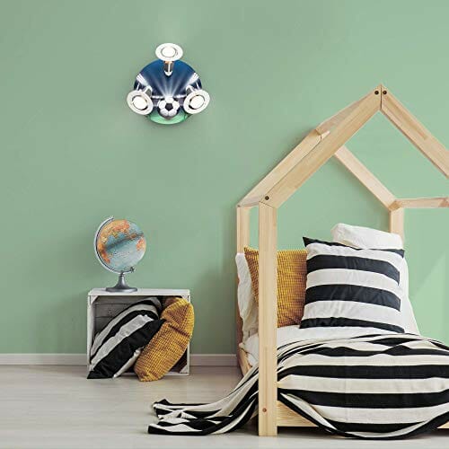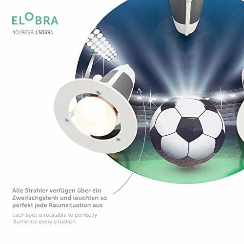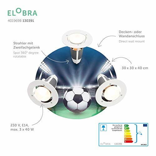 Elobra Lampa sufitowa do pokoju dziecięcego „Piłka nożna” | Wysokiej jakości lampa ścienna do pokoju dziecięcego dla chłopców z drewna – z motywem piłki nożnej, 30 x 30 x 20 cm – rękodzieło z Rudaw