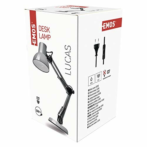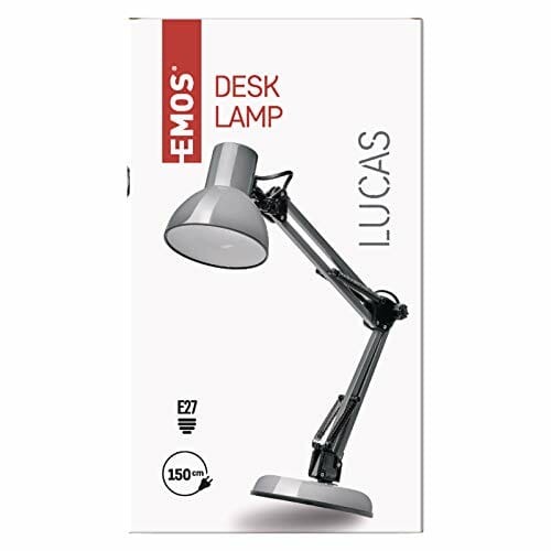 EMOS Designerska lampa biurkowa LUCAS, lampa stołowa w stylu vintage z oprawką E27 / metalowa lampka nocna z zasilaczem/szara lampka do czytania z regulowanym ramieniem