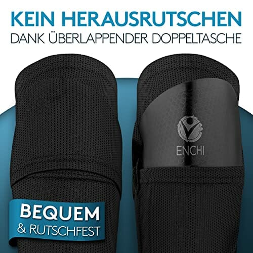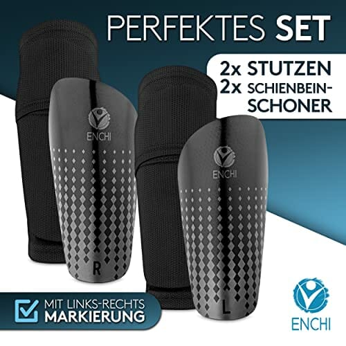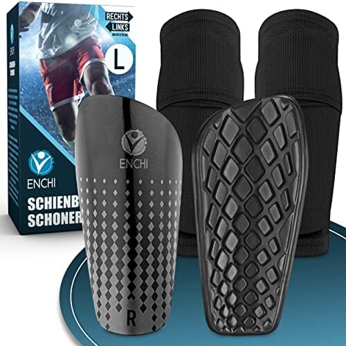 ENCHI Ochraniacze piszczeli – rozmiar L – getry piłkarskie z podwójną klapką dla bezpiecznego trzymania – ochraniacze piszczeli z ochroną kostek – uchwyt na getry do piłki nożnej bez ześlizgiwania się – super lekka piłka nożna piszczelowa