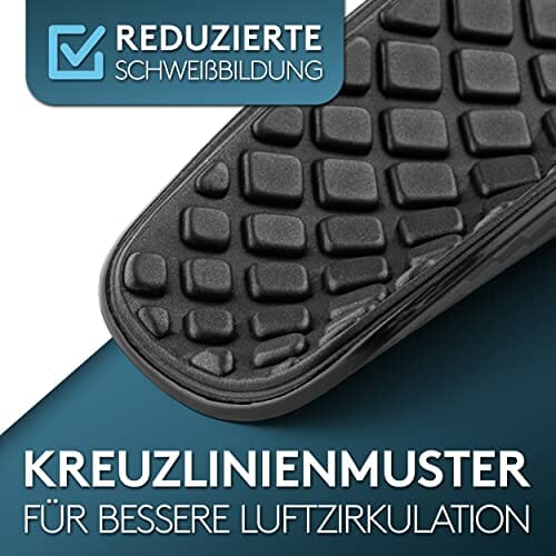 • Wzornictwo w kształcie rombu – dzięki specjalnie opracowanemu wzorowi krzyżowemu po wewnętrznej stronie i ułożeniu pianki EVA panuje bardzo wysoka cyrkulacja powietrza. Zmniejsza ona pot i sprawia, że noszenie jest przyjemne.
