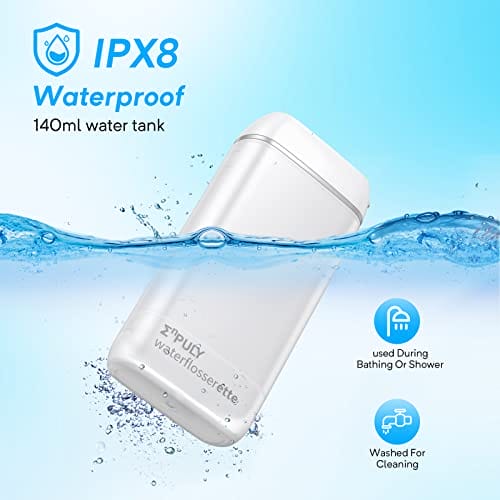 • 【Konstrukcja IPX8】 Zarówno wewnątrz, jak i na zewnątrz pulsująca dentystycznego mają wodoodporną konstrukcję IPX8, aby zapewnić podwójną ochronę. Podwójny pierścień uszczelniający i inteligentna konstrukcja sprawiają, że korzystanie z nici dentystycznej jest bezpieczne w łazience. (Uwaga: wyciągnij zbiornik na wodę, aż „kliknie”.)