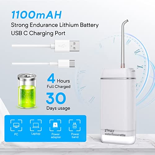 • 【Przenośny hydropulsor i długotrwały akumulator】 Konstrukcja bezprzewodowego irygatora doustnego umożliwia poruszanie się po łazience. Potężną baterię litową można w pełni naładować w ciągu 5 godzin za pomocą kabla USB. Ładowanie interfejsu USB nadaje się do zasilania mobilnego, komputera itp. Przenośny irygator doustny spełnia Twoje potrzeby w podróży. Ważne przypomnienie: Zestaw irygatora doustnego jest dostarczany z adapterem 5V-1A. Proszę użyć adaptera 5V-1A.
