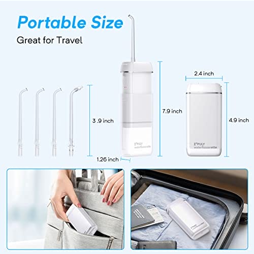 Profesjonalne Przenośne Hydropulsor Dental Mini Bezprzewodowy Zirygator Dental IPX8 Wodoodporny/3 tryby/ 5 dysz wymiany Nadaje się do podróży i domu Profesjonalny Hydropuls Oralny(White)