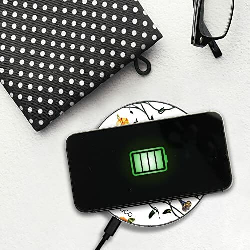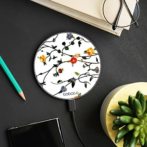ERT GROUP Oryginalna i oficjalnie licencjonowana przez Babaco ładowarka indukcyjna, wzór Kwiaty 008, szklana bezprzewodowa stacja ładująca, kabel Micro USB 1 metr 10W