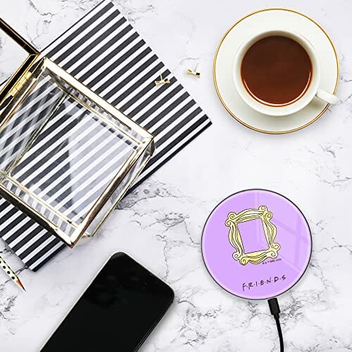 ERT GROUP Oryginalna i oficjalnie licencjonowana przez Friends ładowarka indukcyjna, wzór Friends 006, szklana bezprzewodowa stacja ładująca, kabel Micro USB 1 metr 10W