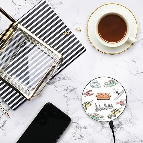 ERT GROUP Oryginalna i oficjalnie licencjonowana przez Friends ładowarka indukcyjna, wzór Friends 011, szklana bezprzewodowa stacja ładująca, kabel Micro USB 1 metr 10W