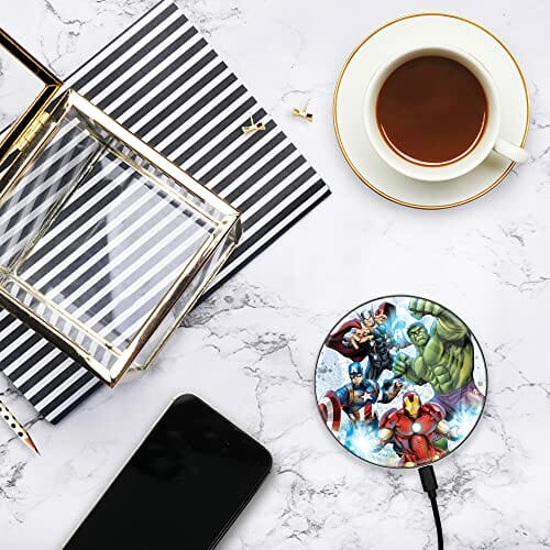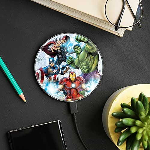 ERT GROUP Oryginalna i oficjalnie licencjonowana przez Marvel ładowarka indukcyjna, wzór Avengers 003, szklana bezprzewodowa stacja ładująca, kabel Micro USB 1 metr 10W