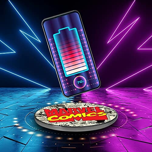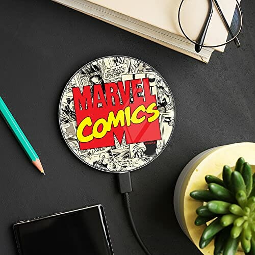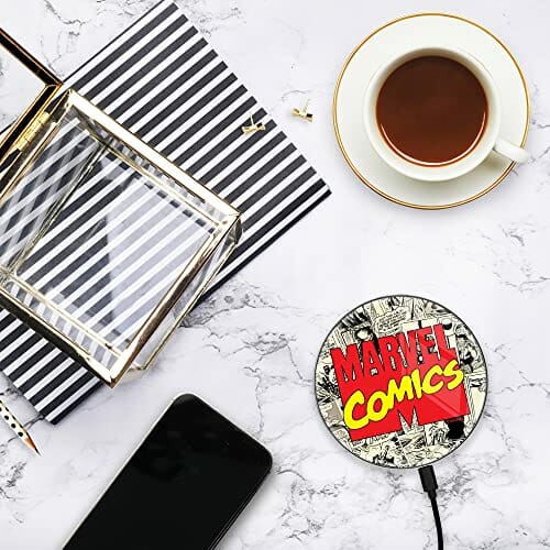 ERT GROUP Oryginalna i oficjalnie licencjonowana przez Marvel ładowarka indukcyjna, wzór Marvel 004, szklana bezprzewodowa stacja ładująca, kabel Micro USB 1 metr 10W