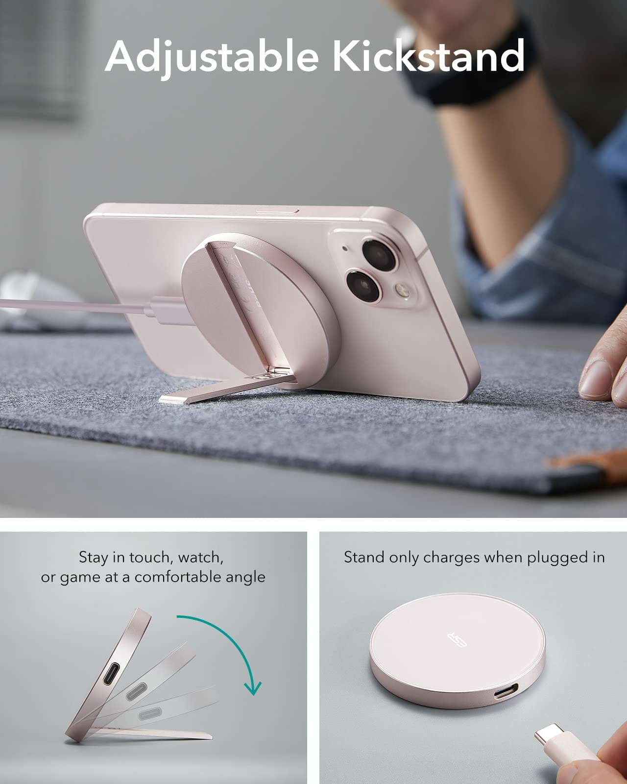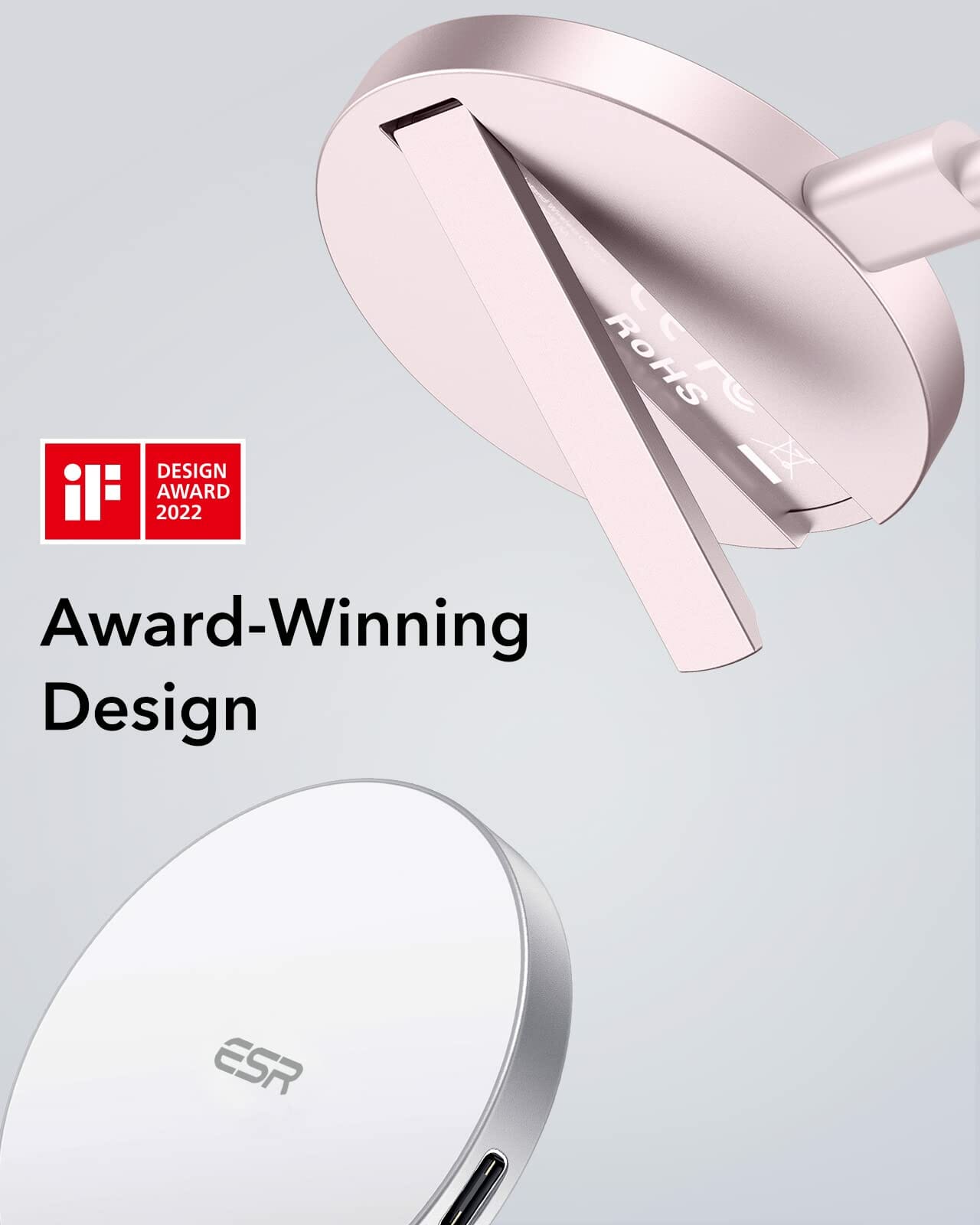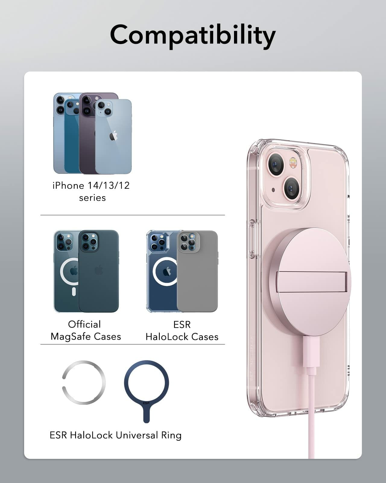 ESR HaloLock Bezprzewodowa ładowarka stojaka, kompatybilna z MagSafe/iPhone 14/14 Plus/14 Pro/14 Pro Max i iPhone 13/12/etui magnetyczne, kabel do szybkiego ładowania USB-C 1,5 m, bez adaptera, pastelowy róż