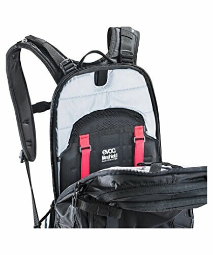 Einzelheiten: Evocs Blackline-Rucksäcke stehen für die perfekte Kombination aus innovativer Belüftung und dem bewährten Technologiestandard der Protector Backpacks. Der FR Trail Blackline ist ein High-End-Tagesrucksack mit integriertem Rückenprotektor, der auf langen Touren und Trails mit dem Bike optimale Unterstützung bietet.LITESHIELD SYSTEM AIRDieses System vereint die für einen Rückenprotektor absolut notwendige Körpernähe mit einem Höchstmaß an Belüftung: Der eng anliegende Rückenbereich ist neben einem großen zentralen Belüftungskanal mit zwei Reihen „Entlüftungsgittern“ versehen: Mit Air-Mesh abgedeckte EVA-Schaum-Streifen mit Belüftungslöchern und einer speziellen, schrägen Giebelfräsung reduzieren die Kontaktfläche zum Rücken und verbessern so die Luftzirkulation. Der extrabreite, ergonomisch geformte Hüftgurt besteht aus Evocs AIRO FLEX Material. So wird die Hauptlast – auch die eines voll beladenen Rucksacks – auf die Hüfte übertragen und dort fixiert. Gleichzeitig ist optimale Atmungsaktivität garantiert.NYLON 210/D RIPSTOP, PU COATEDDie Anforderungen an das perfekte Außenmaterial für Rucksäcke/Taschen kann man in vier Eigenschaften zusammenfassen: haltbar, abriebfest, wasserabweisend und leicht. Genau das ist es, was Nylon 210/D Ripstop bietet. Eine vierfache PU-Beschichtung des leichten Nylon-Grundstoffs sorgt für Feuchtigkeitsschutz und Abriebfestigkeit. Ein Mikrogewebe aus Fasern unterteilt das Grundmaterial in quadratische Segmente um die Ausweitung von Rissen zu verhindern – daher der Name Ripstop.P 600/D, PU COATEDEin sehr robustes Gewebe für Bereiche, die hoher Abnutzung ausgesetzt sind. Dazu ist es reißfest und leicht und nimmt nahezu keine Feuchtigkeit auf. In Kombination dieser Eigenschaften ist es das optimale Material für hoch beanspruchte Taschen oder die Böden von Taschen und Rucksäcken