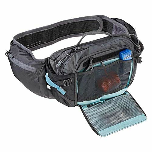 • Praktyczna torba biodrowa z uchwytem na butelkę ma pojemność 3 l, a więc wystarczająco dużo miejsca na narzędzia, butelkę na napoje, prowiant lub dołączony bukłak o pojemności 1,5 l