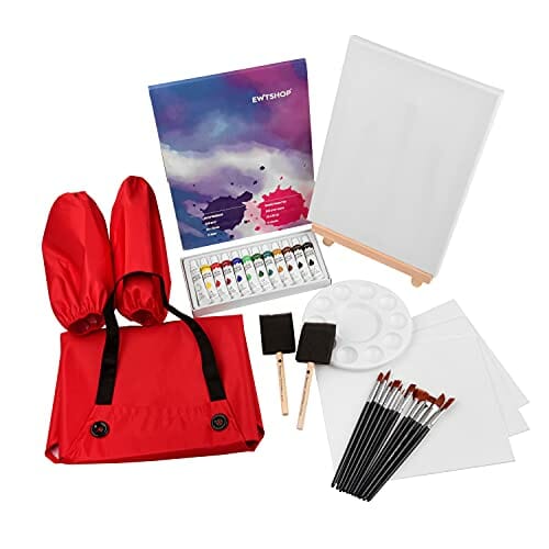 Duży zestaw do malowania dla dorosłych i dzieci z ramą klinową, farby akrylowe, bloki malarskie, płótna, pędzle, paleta malarska, fartuchy, ochraniacze na rękawy, sztaluga, wycieraczki – EWTSHOP. Najlepszy zestaw malarski dla artystów w każdym wieku!