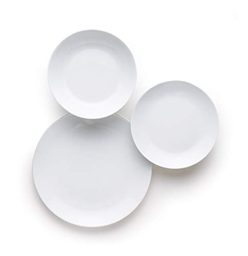 Exèlsa „Coup” serwis stołowy 19-częściowy biały – Porcelanowy zestaw stołowy, 6 płaskich talerzy 27 cm, 6 talerzy do zupy 20 cm, 6 talerzy deserowych 20 cm, zmywarka i mikrofalówka