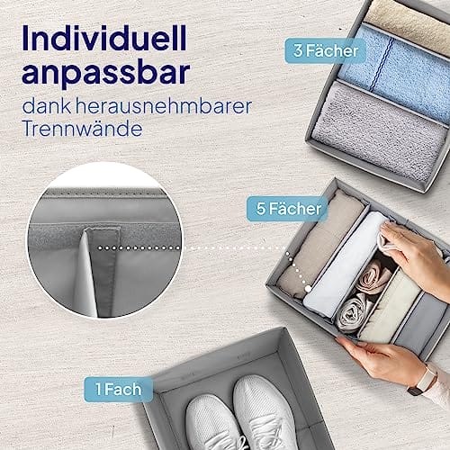 - INDIVIDUELL ANPASSBAR: Mit 4 herausnehmbaren Trennwänden kannst du jeden Ordnungssystem Kleiderschrank genau auf deine Bedürfnisse abstimmen. Perfekt zur Aufbewahrung von Kleidung, Spielzeug und mehr – bring Ordnung in deinen Kleiderschrank, das Kinderzimmer oder Büro!