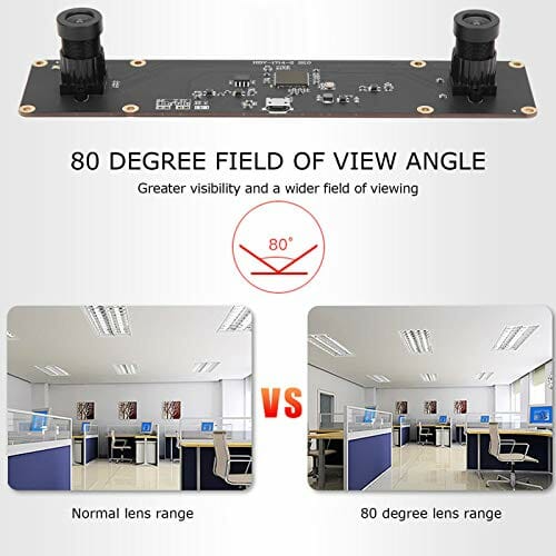 • Szeroki kąt: Ten moduł kamery stereo z dwoma obiektywami ma pole widzenia 80 stopni, większy zasięg widzenia i szersze pole widzenia