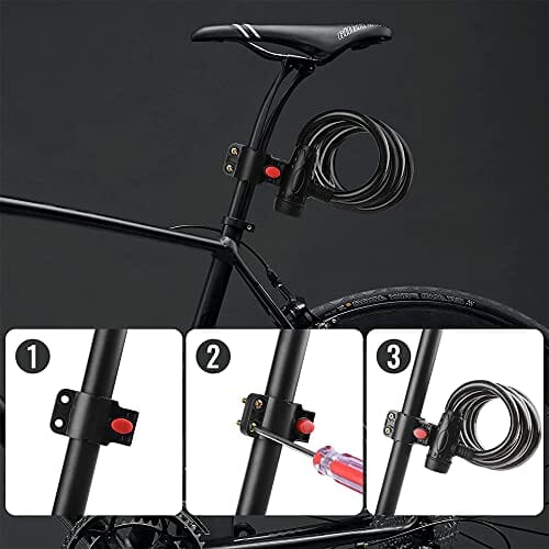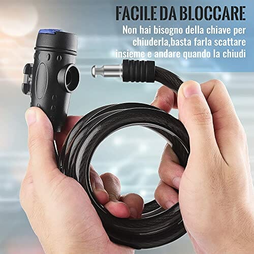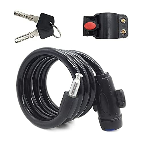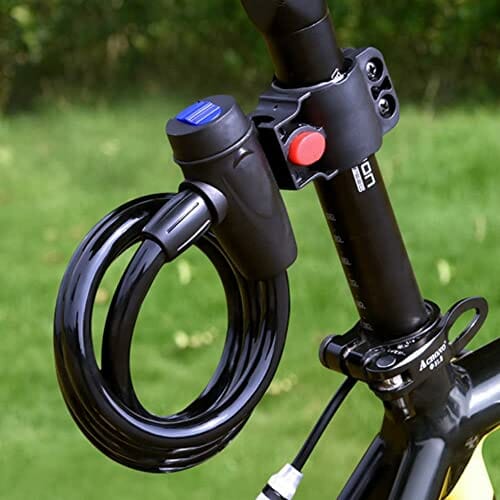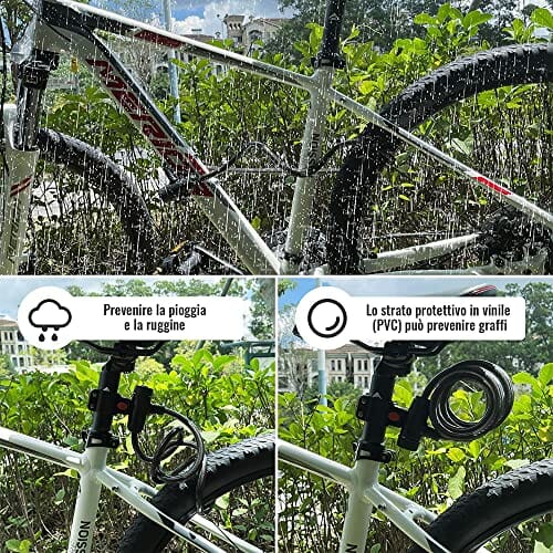 • PRZED I ODPORNY NA INTEMPERIE Elastyczny stalowy kabel o średnicy 12 mm zapobiega cięciu roweru. Cylinder zamka został wykonany ze stali nierdzewnej antykorozyjnej, a stalowy kabel był owinięty wodoodporną powłoką PVC, dzięki czemu blokada kabla jest bardziej odporna na zarysowania i rdzę.