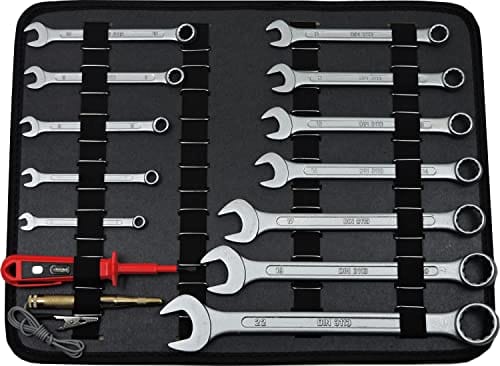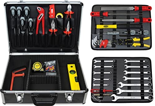 • Comprehensive equipment including: 5 pairs of pliers, 2 hammers, 7 screwdrivers, 15 combination spanners (6 – 22 mm), 10 Allen keys for Allen screws, 2 circuit testers, 3 files and more