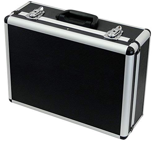 • Attractive and sturdy toolbox with 4 trays and variable compartment layouts in the base. The box has space for additional tools and parts