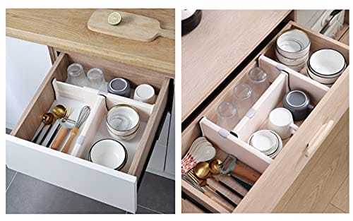 4. Uniwersalne zastosowanie: Separatory Famhap są idealne do organizacji różnych przedmiotów w szufladach. Możesz nimi podzielić przestrzeń na mniejsze sekcje, aby przechowywać sztućce, narzędzia, biżuterię, kosmetyki i wiele innych. Dzięki nim wszystko będzie uporządkowane i łatwo dostępne.