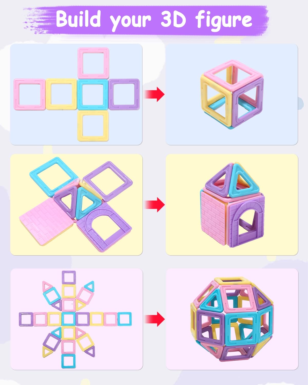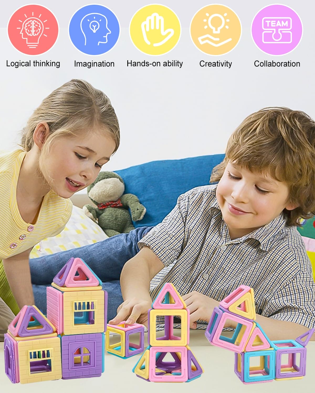 • Wiele sposobów na grę : Zestaw klocków magnetycznych dla dzieci w wieku od 3 lat zainspiruje ich kreatywność. Dzięki magnetycznym klockom konstrukcyjnym chłopcy i dziewczynki w wieku od 3 lat mogą z łatwością budować domy, zamki, latające maszyny, rakiety, spadające gwiazdy i nie tylko. Dzieci mogą użyć swojej wyobraźni, aby zbudować dowolny kształt. Jest to zabawka, która może być używana przez długi czas.