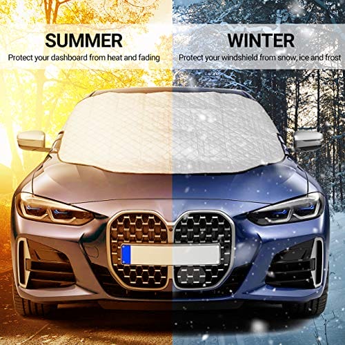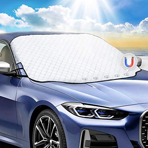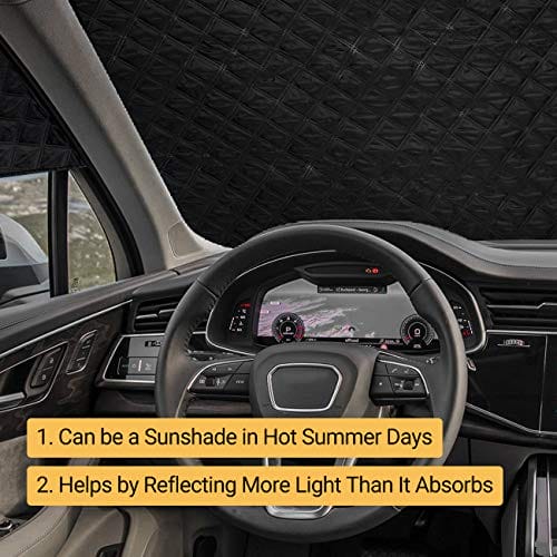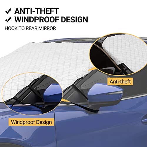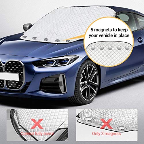 ✅ 【Konstrukcja krawędzi magnesów】: 【Konstrukcja krawędzi magnesów】 – Dzięki 5 dostarczonym magnesom na krawędziach i 2 elastycznym paskom do mocowania do lusterek wstecznych, osłona przedniej szyby może pozostać na miejscu nawet przy silnym wietrze i nie może zostać zdmuchnięta. Aby chronić przednią szybę przed zarysowaniami i pęknię
