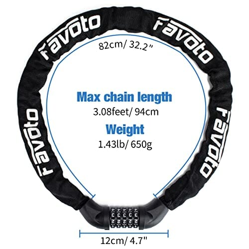 Favoto Blokada rowerowa 5-cyfrowe urządzenie zabezpieczające przed kradzieżą blokada szyfrowa blokada łańcucha rowerowego blokada motocyklowa ze stalowymi ogniwami łańcucha na grill rowerowy, drzwi motocyklowe czarne 96 cm