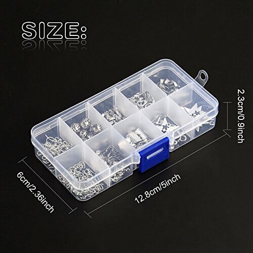 - Dołączone komponenty: 4 mm/8 mm otwarte pierścienie do skoków, 7 x 12 mm zapięcie na homara, 26 mm głowice, śruby oczkowe szpilki 10 mm, koraliki zaciskowe 2 mm, haczyki 20