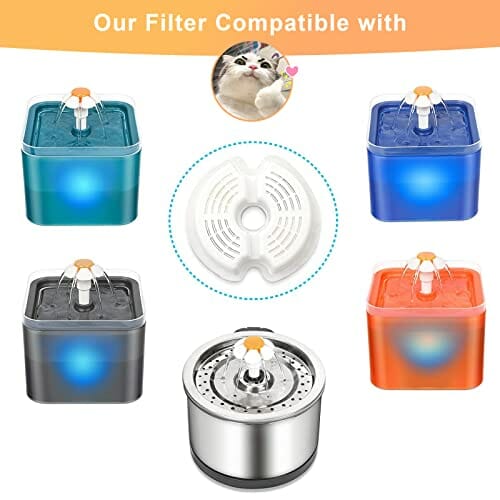 • Dla kotów o pojemności 2,5 l – nadaje się do fontanny dla kotów ze stali nierdzewnej i 2 l przezroczystych, kolorowych fontann z kwiatami ze światłem LED. Możesz mieć pewność, że kupujesz nasz filtr, ponieważ jesteśmy oryginalnym producentem z wysokiej jakości filtrami do fontanny dla kotów! Nie martw się o rozmiar, pasuje on do wyżej wymienionych modeli fontann dla kotów.