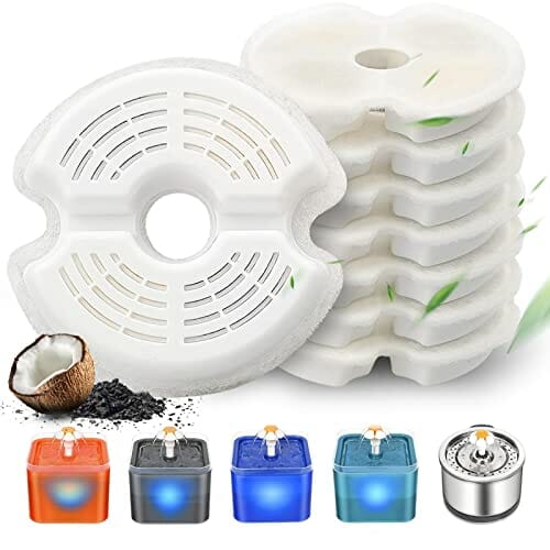 • Bezpieczny dla zdrowia – ten wysokiej jakości filtr wymienny do fontanny może usunąć twardą wodę i sprawić, że jest bardziej miękka. Okrągły filtr składa się z włókniny, węgla aktywnego z łupin kokosowych i żywicy jonowymiennej oraz siatki ABS. Zapewnia czystą, świeżą wodę dla Twojego ukochanego zwierzaka.