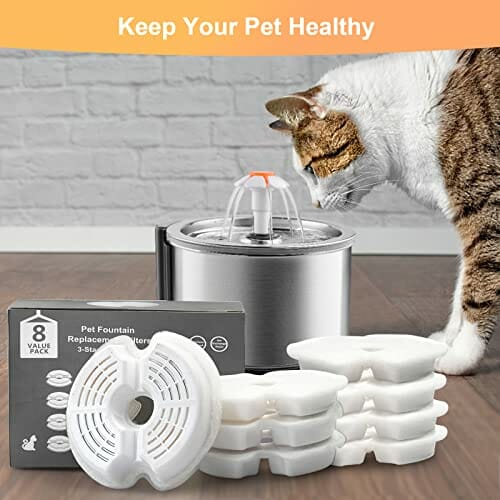 Filtr do fontanny dla kotów, 8 sztuk do fontanny ze stali nierdzewnej 2,5 l, fontanna dla kotów i psów z żywicą i węglem aktywnym 2 l