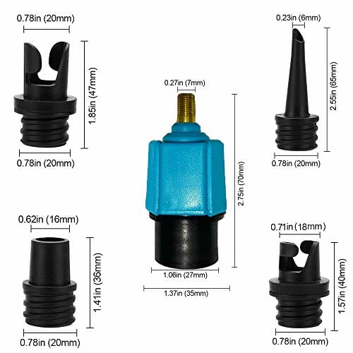 ✅ 4 różne adaptery: 4 różne adaptery do nadmuchiwania – w zestawie 1 szt. Adapter pompy SUP i 4 szt. Dysze powietrzne, które spełniają wymagania dotyczące pompowania większości urządzeń. Każda z nich różni się od innych dysz powietrznych, które można zamontować na adapterze w zależności od sytuacji.