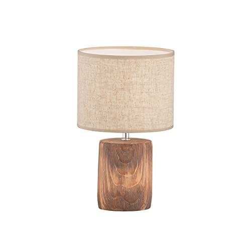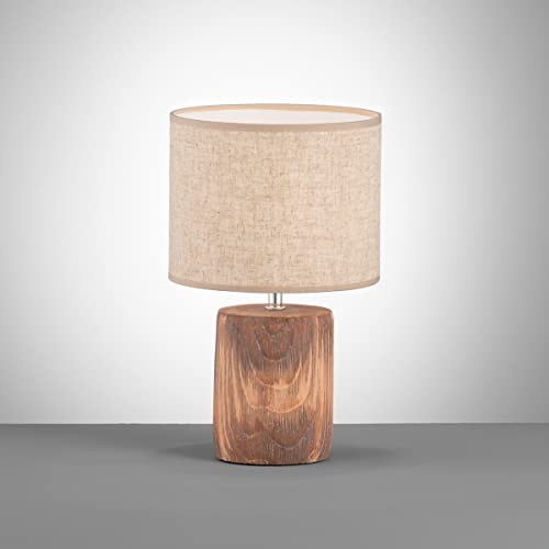 Fischer & Honsel Lampa stołowa Malik, lampa betonowa o wyglądzie drewna z abażurem z materiału i włącznikiem sznurkowym, beton w kolorze drewna i lnu w kolorze piasku, wysokość: 35 cm