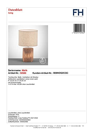 • Światło: Dzięki materiałowemu kloszowi w kolorze piasku światło wydaje się pośrednio w pomieszczeniu. Powstaje bardzo przytulny nastrój w Twoim domu.