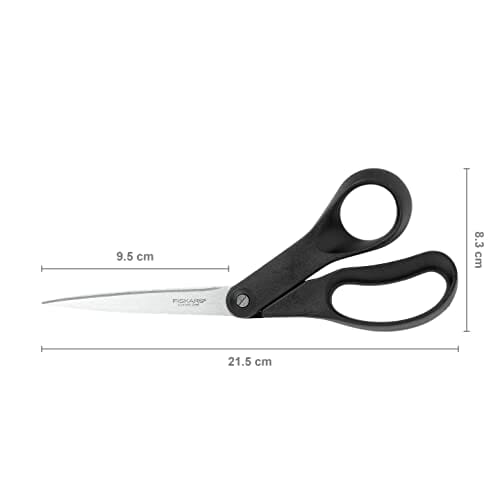 Zakres dostawy: 1: Zakres dostawy: 1 x uniwersalne nożyczki Fiskars Essential, długość całkowita: 21 cm, waga: 81 g, materiał: wysokiej jakości stal/tworzywo sztuczne, kolor: czarny, 1023817